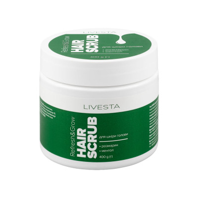 Скраб-пілінг для шкіри голови Refresh&Grow з розмарином і ментолом LIVESTA, 400 г