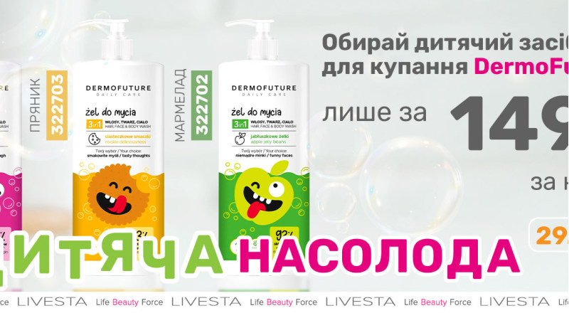 - Пропозиція діє в розрізі замовлення - за кожні 5 ББ можна обрати 1 засіб для купання DermoFuture.
