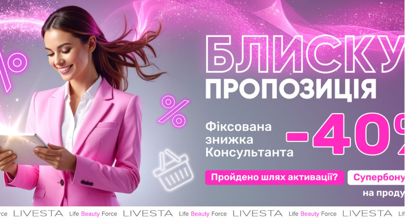 - Учасники програми "Активуй силу свята" матимуть можливість отримати додаткову знижку 45% на продути бренду LIVESTA.