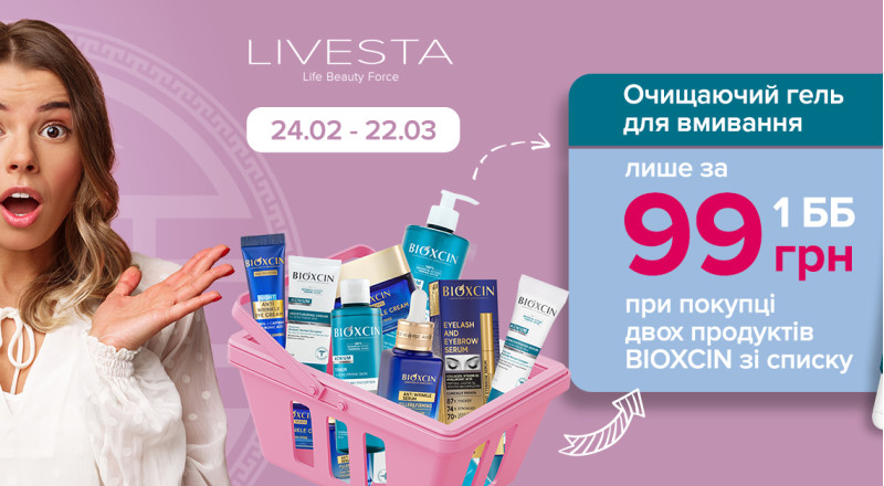 Продукти, що беруть участь у програмі: cерії BIOXCIN проти зморшок та проти акне.