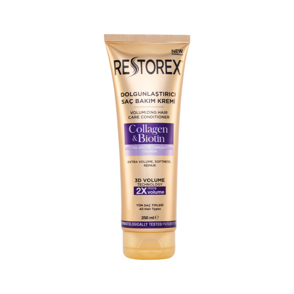 Якщо вашому волоссю не вистачає зволоженості, страждаєте на випадіння, маєте сухі та позбавлені блиску прядки або помітили, що зачіска перестала бути об'ємною, не засмучуйтеся: для всіх цих проблем існує одне рішення - Volumizing Hair Conditioner від преміального турецького бренду Restorex. Спеціальна формула кондиціонера, що містить білок колаген і вітамін біотин, глибоко проникає в структуру волосся, живить його і надає ідеальний об'єм. Колаген має інтенсивну зволожуючу дію, завдяки чому ви швидко повернете локонам еластичність і чудовий блиск. Біотин потурбується про міцність вашого волосся, підживить кінчики. А технологія 3D Volume гарантує збільшення об'єму вдвічі! Кондиціонер Restorex забезпечує повноцінний відновлюючий догляд за вашим волоссям до самих кінчиків. Не обтяжує прядки. За регулярного користування продуктом ваше волосся стане густим і здоровим.