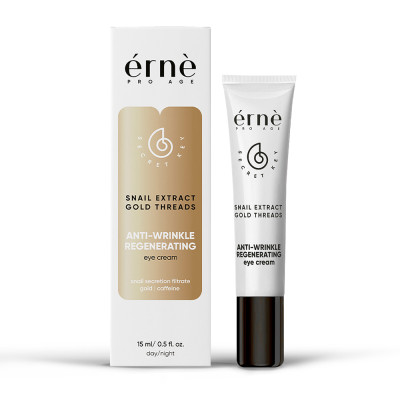 Почувайтеся молодою в будь-якому віці разом з Erne! З віком наша шкіра природним чином втрачає колаген та еластин - два білки, необхідні для підтримки пружності та гладкості шкірного покриву. Це може призвести до низки поширених проблем зі шкірою, таких як тонкі лінії й зморшки, в’ялість та сухість. Для подолання цих проблем і задоволення потреб зрілої шкіри майстри бренду Erne розробили особливу лінійку продуктів PRO.AGE, наповнивши її ідеєю витонченого процесу старіння. В компанії твердо вірять, що природний процес старіння, доповнений правильною косметикою, дозволяє нам повною мірою насолоджуватися життям без негативу в будь-якому віці. Мультиконцентрований крем для очей та повік Erne, наповнений магічною силою золота, муцину равлика та кофеїна, розкриє вам таємницю по-юнацьки яскравого погляду та відпочилого вигляду! Ключові особливості: