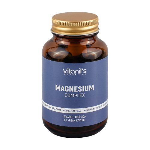 Дієтична добавка «Магній» спеціально розроблена для щоденного вживання з урахуванням потреб організму. Комплекс містить вдосконалену суміш п’яти високобіодоступних форм магнію (бісгліцинат, малат, таурат, цитрат і L-треонат), а також активну форму вітаміну B6 (P-5-P), що підсилює біодоступність магнію та забезпечує ефективне засвоєння і збалансовану дію на організм. Магній сприяє зменшенню втоми та втомлюваності, підтриманню електролітного балансу, нормальному енергетичному метаболізму, функції м’язів і роботі нервової системи. Крім того, магній сприяє нормальному протеїновому синтезу протеїну, підтриманню нормального стану кісток і зубів, а також відіграє важливу роль у процесі поділу клітин. Добавка Vitanil's ідеально підходить для людей, які піклуються про ментальне здоров’я, нормальний сон і загальний тонус організму. Вміст однієї баночки розрахований на 30 днів прийому. Дієтична добавка не містить шкідливих для здоров’я речовин.