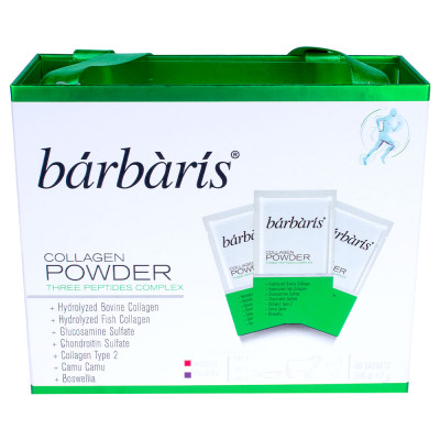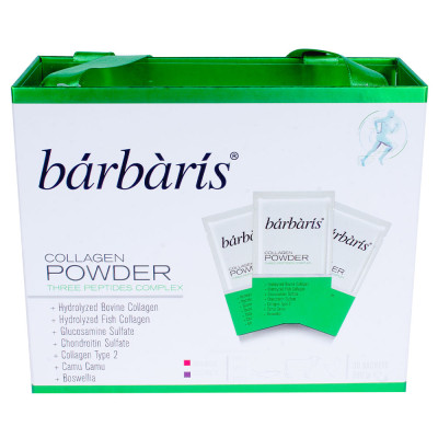 Barbaris - це перша в Туреччині форма запатентованого колагену для суглобів, отримана з трьох різних джерел тваринного походження і ферментативно гідролізована до чистої форми. Середня молекулярна маса поліпептидів становить близько 2000 Да. Кожне саше містить 10.04 г чистого колагену з Франції, дію якого підсилюють інші компоненти преміальної якості. Порошок Barbaris легко розчиняється у воді та повністю засвоюється організмом. Дієтична добавка має презентабельну упаковку і свіжий яблучний смак. Вміст одного пакування розрахований на 30 днів прийому. Дієтична добавка не містить цукру та шкідливих для здоров’я речовин.