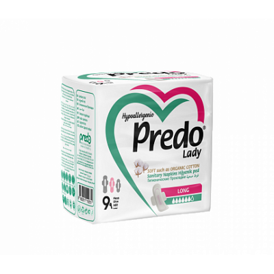 Надійний захист і комфорт на 100%. М'який верхній бавовняний шар надає додатковий комфорт при використанні. Завдяки внутрішньому шару, що перетворює рідину на гель, володіє чудовими властивостями, які вбирають та захищають від протікань. Надійно фіксуються на нижній білизні. Запобігають розмноженню бактерій і нейтралізують неприємний запах. Прокладки з крильцями для критичних днів Predo Lady Long мають природний для людини рівень pH, що запобігає подразненню шкіри. Predo Lady Long-абсолютний захист, чистота та ваша впевненість протягом дня!