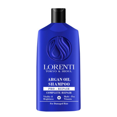 Шампунь з аргановою олією LORENTI дбайливо очищає волосся, водночас насичуючи його поживними речовинами. Завдяки системі Pro-Repair і комплексу вітамінів засіб ефективно відновлює структуру волосся, зберігаючи природну вологу, м’якість та блиск. Ідеально підходить для сухого, тьмяного або термічно чи хімічно пошкодженого волосся.