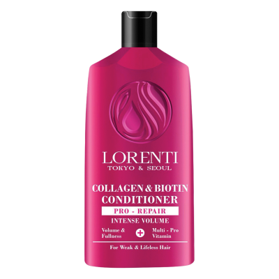 Кондиціонер LORENTI з колагеном і біотином розроблений для глибокого зволоження, відновлення та полегшення розчісування. Кремова текстура м’яко огортає кожну волосину, усуває сухість і пухнастість, даруючи шовковисту м’якість і природний блиск уже після першого застосування.