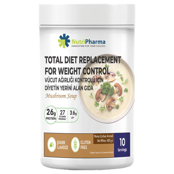 Дієтична добавка NutriPharma з насиченим смаком домашнього грибного супу здатна замінити повноцінний прийом їжі, допомагаючи підтримувати вагу та збалансовано харчуватися.