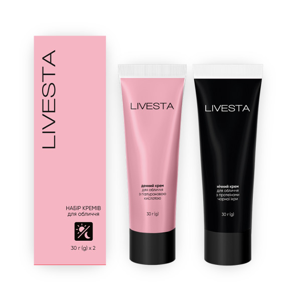 Креми для обличчя від LIVESTA містять активні компоненти для ретельного зволоження клітин шкіри і насичення шкірного покриву необхідними поживними речовинами. Приємний аромат, м'яка текстура та ефективні інгредієнти забезпечать ідеальний догляд та захист шкіри впродовж усього дня та ночі. Після використання кремів LIVESTA шкіра буде сяяти та набуде здорового доглянутого вигляду.