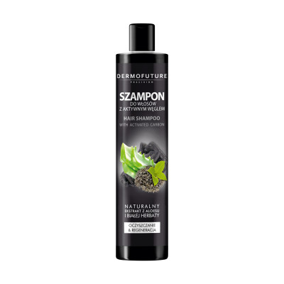 Інноваційний шампунь від DermoFuture – це ідеальний продукт для щоденного догляду за як фарбованим, так і за натуральним волоссям будь-якого типу, включаючи схильне до надмірної жирності. Він ефективно очищає волосся та шкіру голови від надлишку шкірного жиру й залишків засобів стайлінгу (гелі, спреї, лаки і т. ін.). Активний склад продукту регулює жировий баланс шкіри голови, лишаючи ваші локони глибоко зволоженими та наповненими блиском. Деревне вугілля у складі шампуню притягує й поглинає забруднення наче магніт, а також надає антисептичну та протизапальну дію. Сік алое стимулює ріст волосся, активно бореться з лупою, живить та зволожує кожну волосинку. Білий чай захищає прядки від шкідливої дії сонячних променів і вільних радикалів завдяки своїм антиоксидантним властивостям. Додає волоссю м'якість та шовковистість. Насичений колір шампуню не фарбує волосся та не забруднює ванну. Не містить шкідливих для здоров’я речовин.
