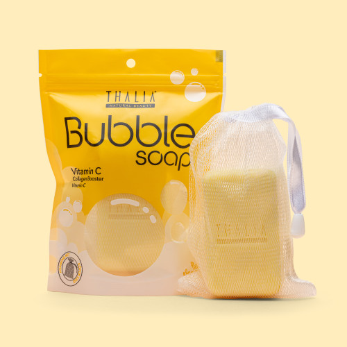 Особливе мило THALIA стає ще особливішим! Кожен брусок загорнутий в піноутворюючу сіточку, яка працює як мочалка і помітно покращить вашу щоденну рутину догляду за тілом. Спеціальна текстура сітки м'яко наносить мило на шкіру і водночас дозволяє отримати більш щільну кремову піну. Роблячи ніжний масаж за допомогою бульбашкового мила THALIA, ви дозволите активним компонентам краще проникати в шкіру і тішити вас результатами.