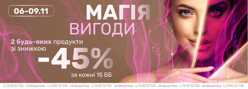 За кожні 15 ББ у замовленні обирай 2 будь-які продукти з каталогу зі знижкою –45%.