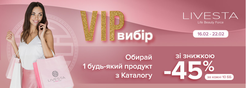 - Пропозиція ДІЄ В РОЗРІЗІ ЗАМОВЛЕННЯ - за кожні 10ББ можна обрати 1 продукт на вибір з каталогу зі знижкою 45%.