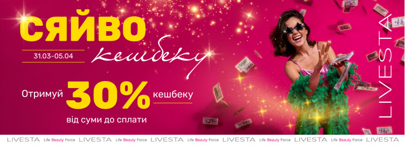 30% від суми до сплати повертається назад на твій баланс!